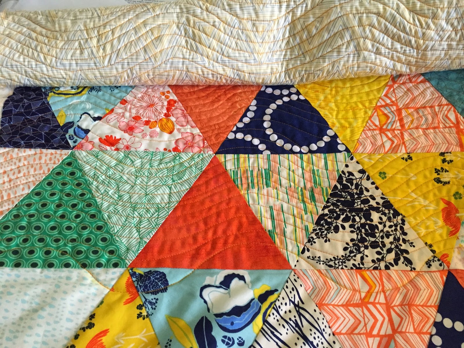 I started a triangle quilt on Quiltcation 2014 (Cape Cod vacation in August accompanied by sewing machines).